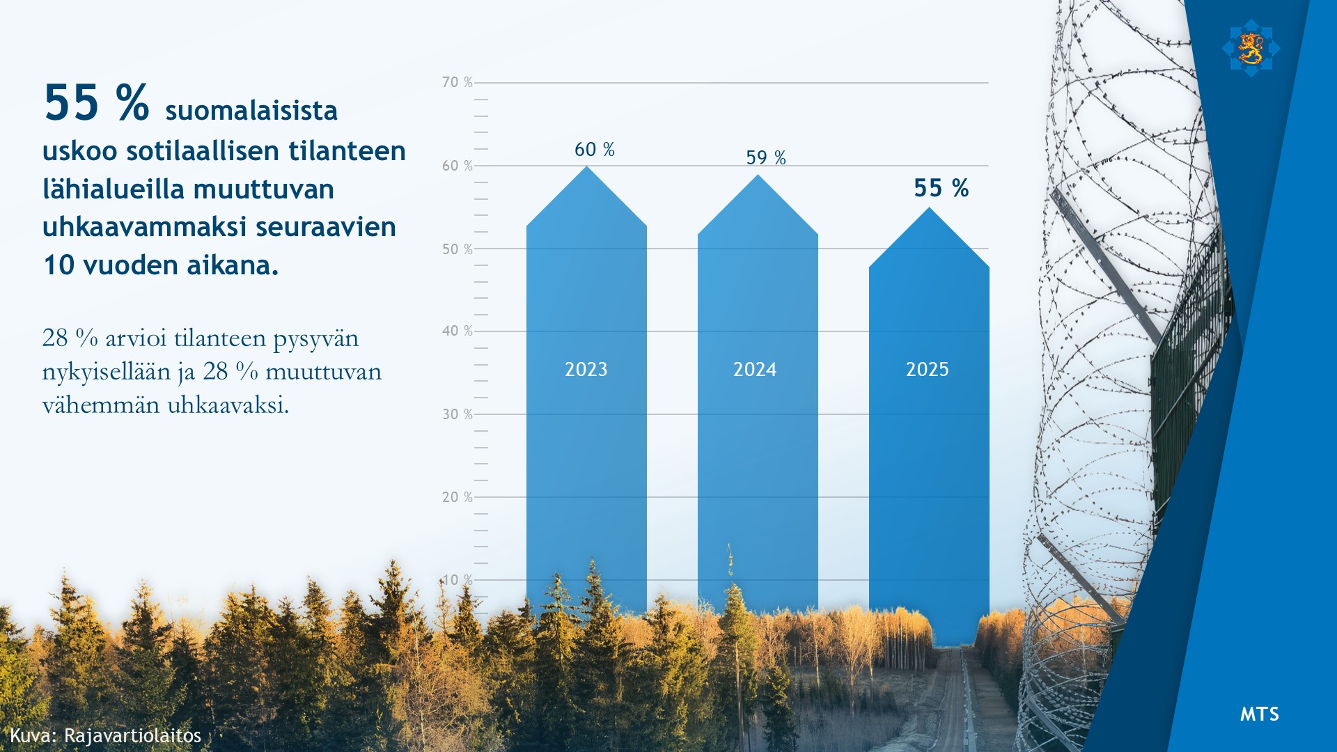 MTStekee vuosittain mielipidetutkimuksia ulko- ja turvallisuuspolitiikasta, maanpuolustuksesta ja turvallisuudesta.